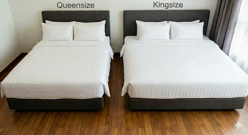 Im Gegensatz dazu ist ein Queensize-Bett etwas kleiner, aber immer noch geräumig und komfortabel. Mit einer Breite von etwa 150 cm bis 160 cm bietet es Platz für ein oder zwei Personen. Queensize-Betten sind eine beliebte Wahl für Paare oder Einzelpersonen, die mehr Platz zum Entspannen möchten, ohne dabei zu viel Platz im Schlafzimmer einzunehmen.