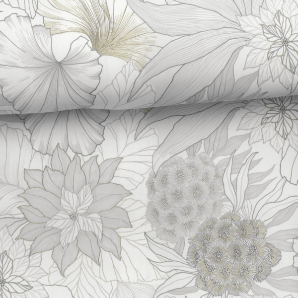 Die Bettwäsche „Anina“ zeichnet sich durch ihr edles, zurückhaltendes Design aus. Zarte Blütenmotive in fein abgestuften Grau-, Creme- und Goldtönen verleihen ihr eine elegante, ruhige Ausstrahlung. Die dezent schimmernde Oberfläche des hochwertigen, mercerisierten Mako-Baumwoll-Satins sorgt für ein luxuriöses Hautgefühl und sanften Glanz.