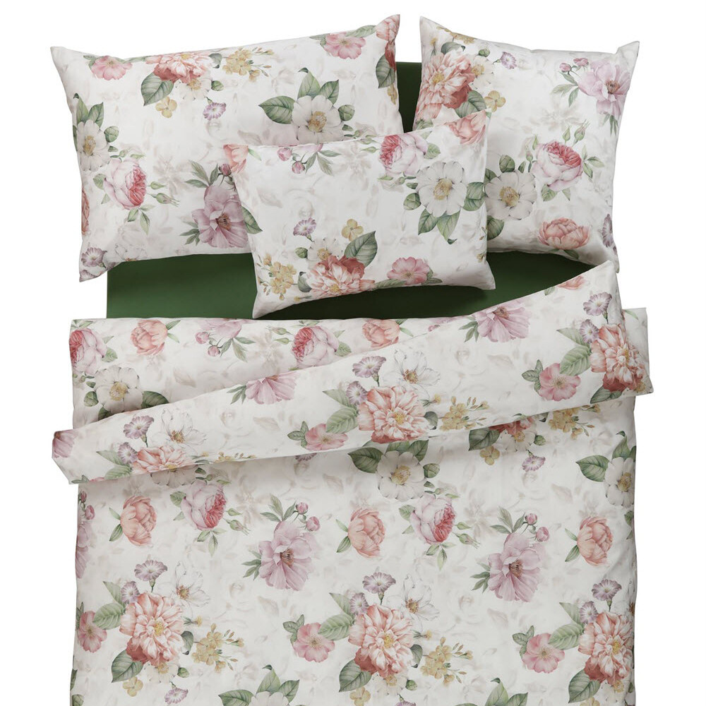 Tauchen Sie ein in zeitlose Eleganz mit unserer klassischen Bettwäsche „Carole“ im Blumen- und Blättermotiv. Das zarte Rosa und Grün auf hellem Grund verleiht Ihrem Schlafzimmer einen Hauch von Frische und Romantik. Speziell für den Herbst entworfen, passt diese Bettwäsche aber auch perfekt in die anderen Jahreszeiten. Geniessen Sie stilvolle und komfortable Nächte in diesem zeitlosen Design.