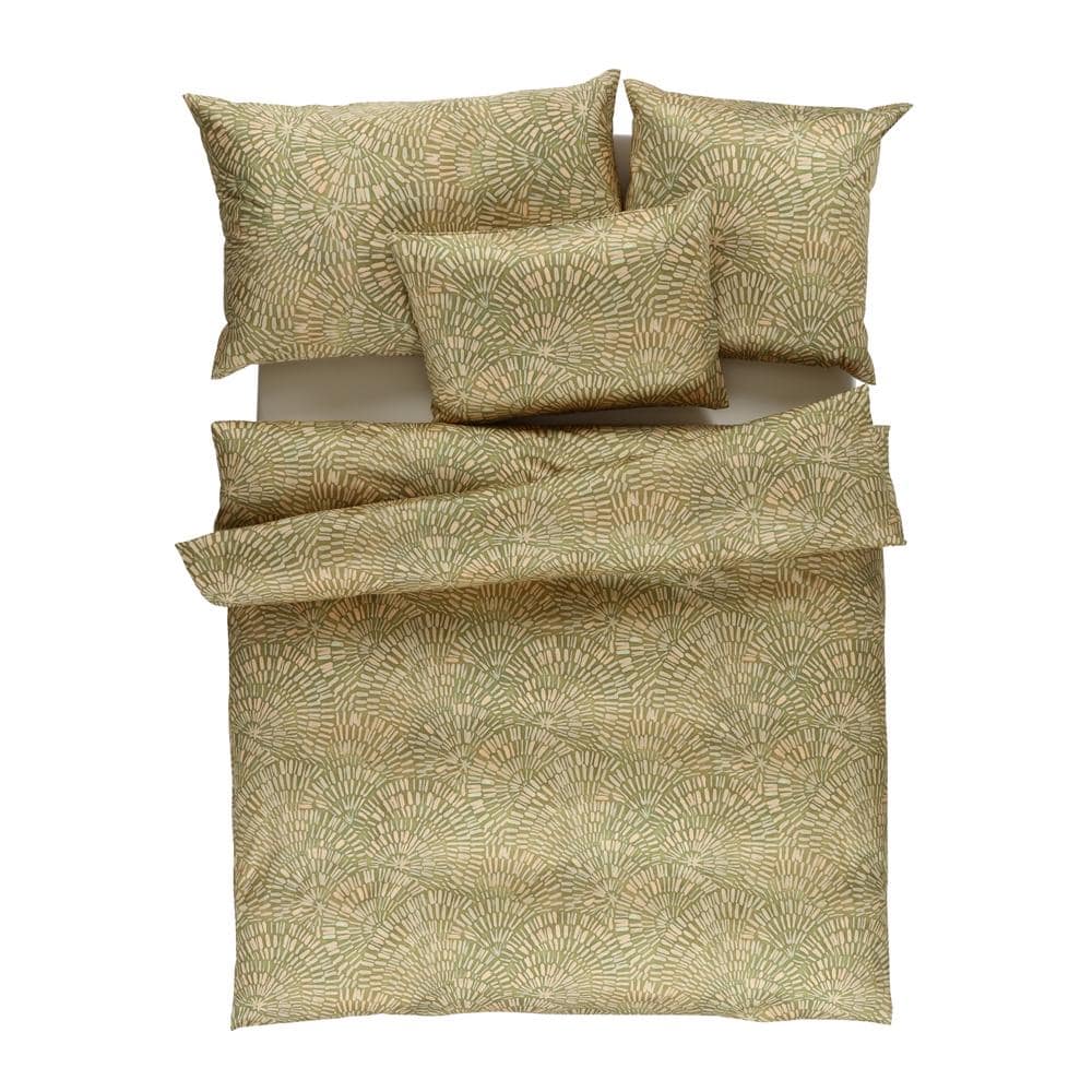 Diese hochwertige Bettwäsche verleiht Ihrem Schlafzimmer eine harmonische und moderne Note. Feine, fächerförmige Linien in sanften Grün- und Beigetönen erinnern an organische Formen und schaffen eine warme, ruhige Atmosphäre.