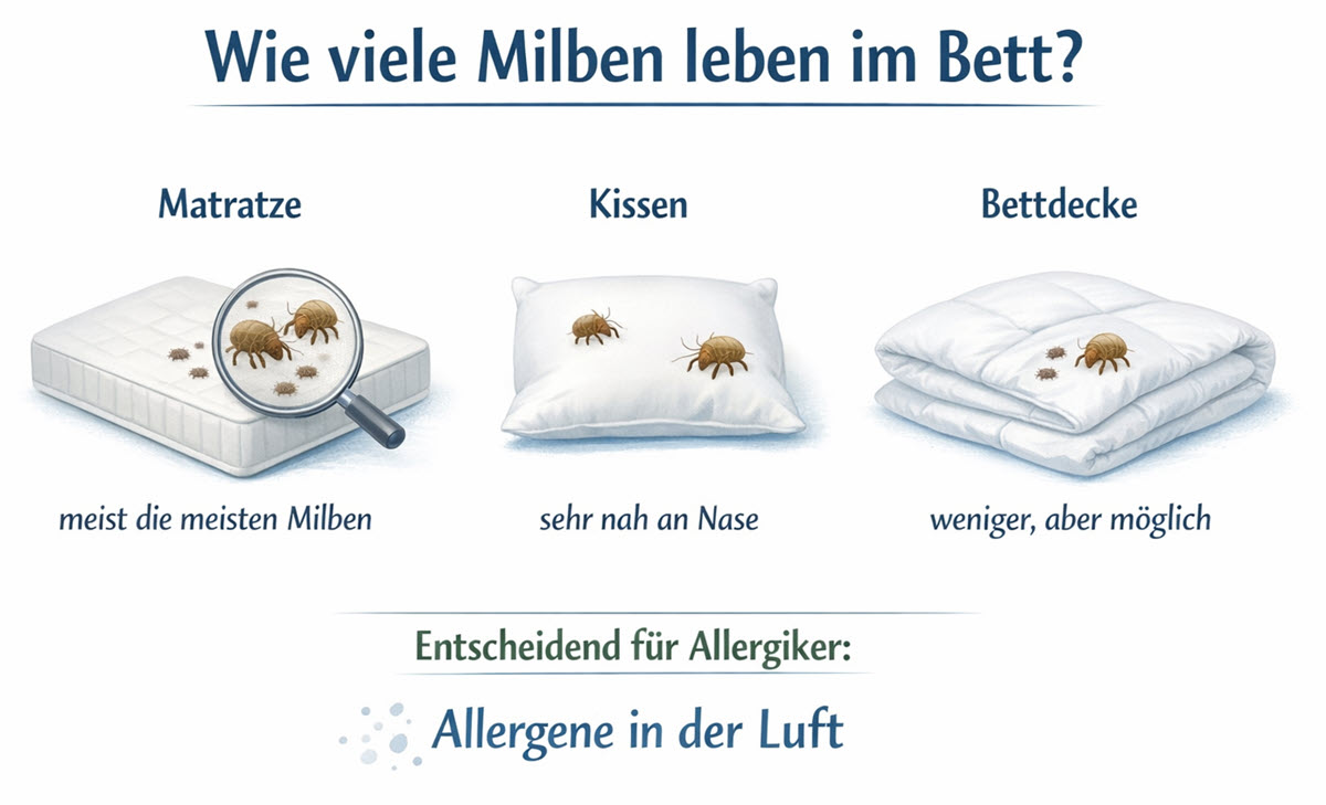 Gerade für Allergiker ist deshalb nicht die reine Zahl das Wichtigste, sondern die Frage: Wo sitzen die meisten Milben und was hilft wirklich?